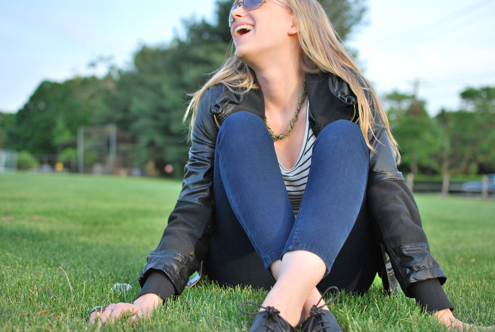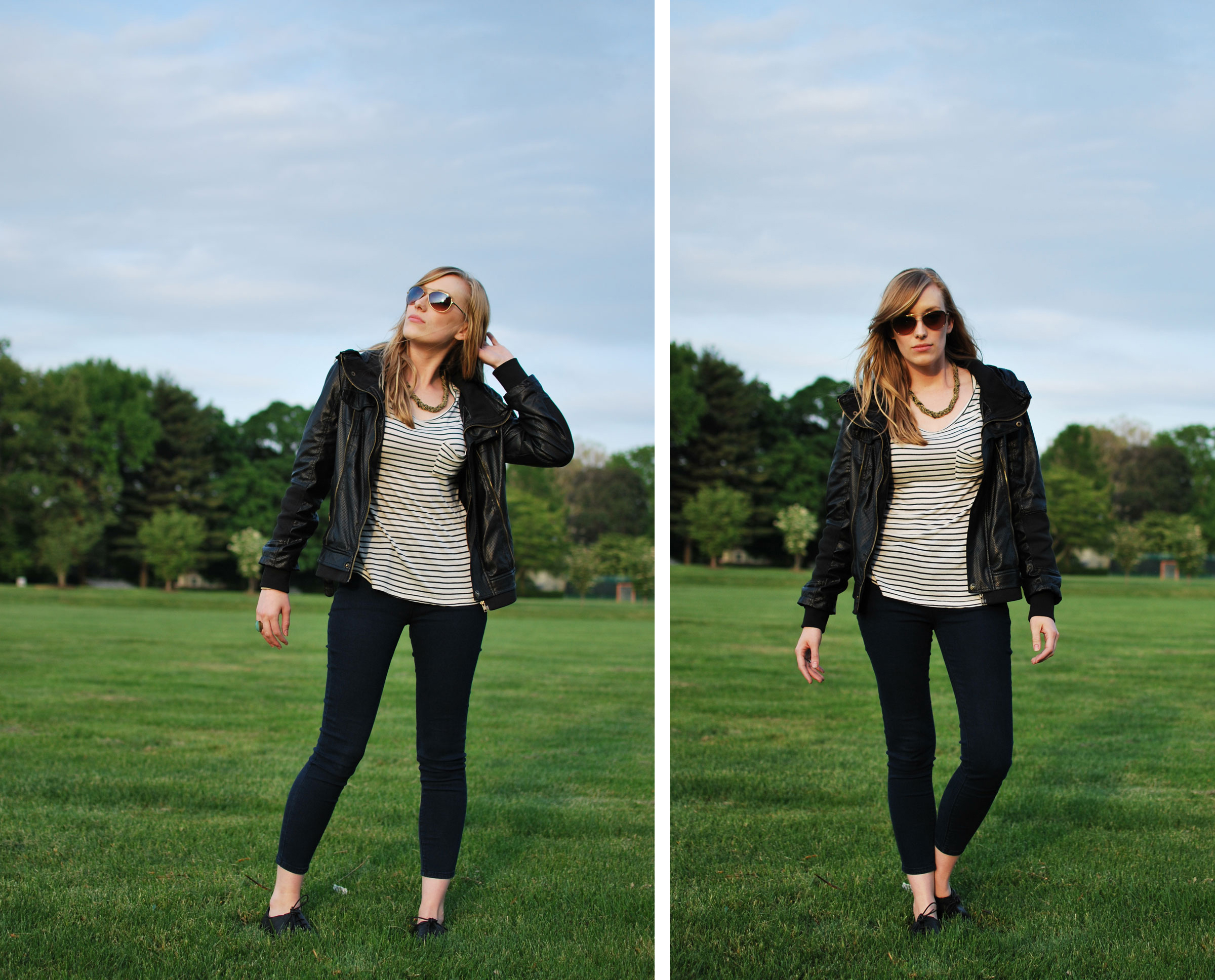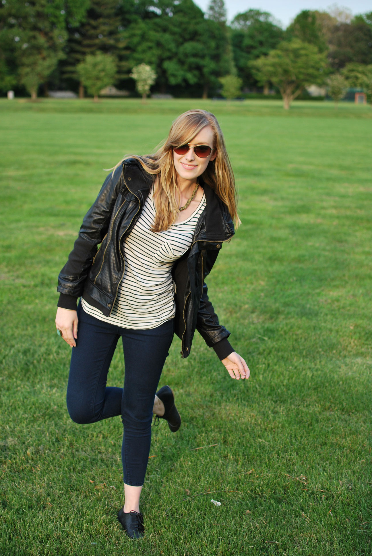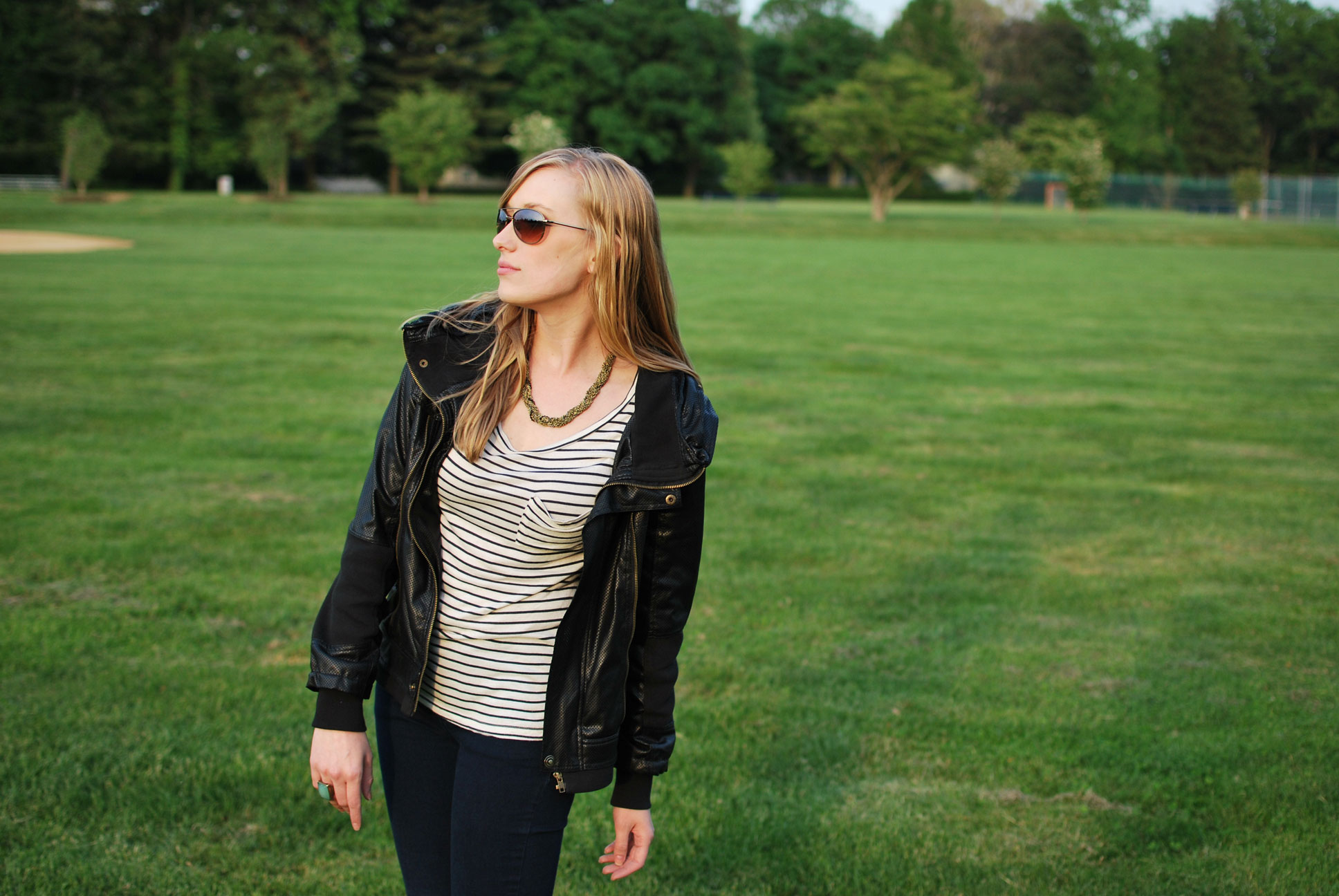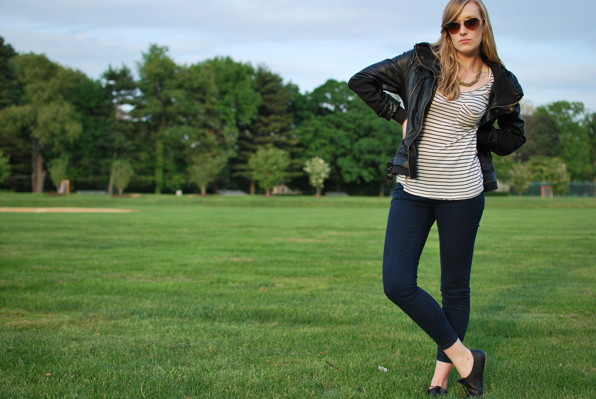 So, we will be diving into the archives a little till I catch back up with present day. K? K. So as most of you that follow me on twitter know, every thursday I head to my allergy shots in the burbs. So, this particular day, we stopped at a cute little baseball field to jump out and take some shots. I was basically rolling around in the grass. Those pics didnt turn out so great. HA! Andrea convinced me to buy a pair of these skinnies when she visited philly a few months back. I feel like I am very fancy spandex. Sometimes a simple tee and jeans is all a girl needs. And a cute boyfriend behind the camera to laugh at! THANKS for the photos Bri.
