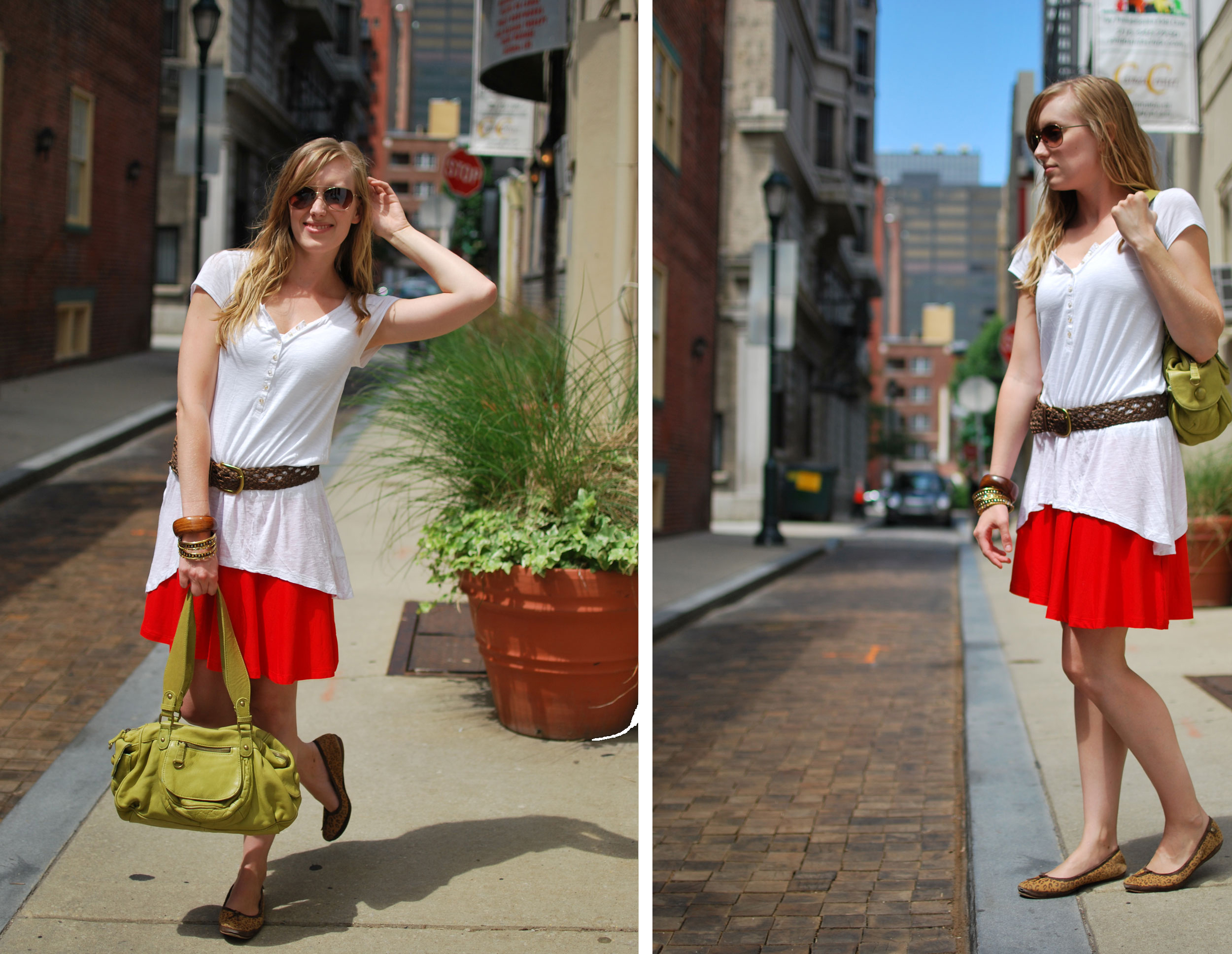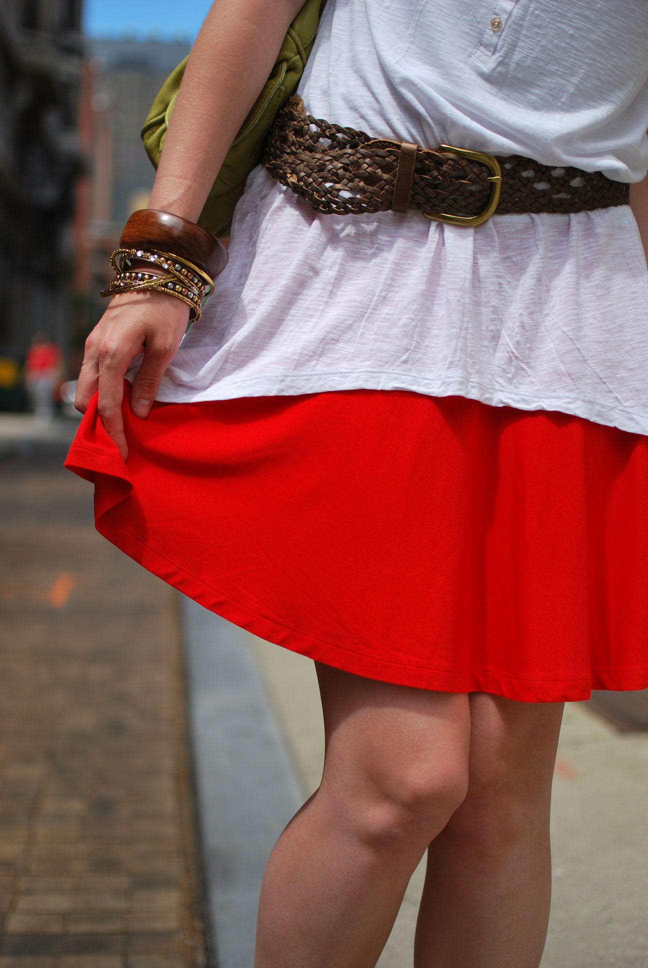 Ahhh Monday. A day to catch up from weekend activities. I spent the weekend in the suburbs with Brian and my parents. Took in some nature, had some tasty bbq, and of course we watched the Dutch play in the world cup. (Hi, Im Dutch) In all this heat I have been turning to lots of loose layers. I have worn and reworn this shirt from h&m a million times by now. I love the uneven cut and how it flows. This time, I added a flowy skirt underneath and added a woven belt. Actually my whole outfit is h&m and I didn’t realize it until I had it all on. Sometimes, it just happens that way! I hope everyones weekend were divine. LET’S ROCK THIS WEEK!