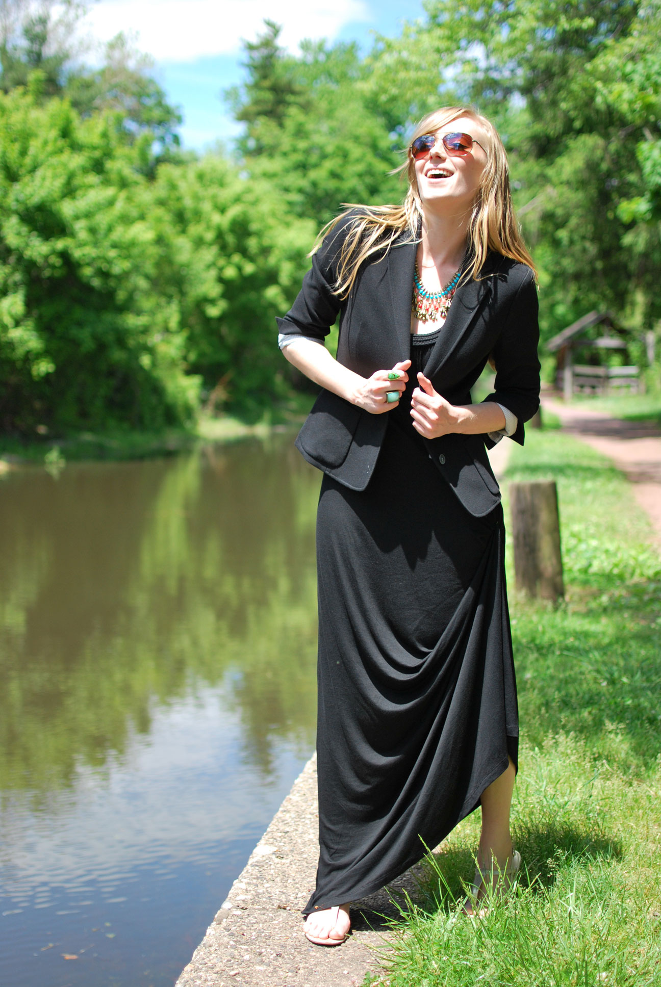 Oh New Hope, how I love you so. It is one of my favorite weekend destinations to get some fresh air and french pastries! On any given Saturday, you might find me at the tiny C’Est La Vie french bakery, enjoying my decaf Lacas coffee and a pate sandwich on fresh baked bread. Yes, this is my idea of a good time. This particular trip was a little date with my lovah. So I wanted to look polished for our date. I remembered seeing a look on the fabulous Ana’s blog that I just had to replicate! A blazer so easily adds a polish to even the most summery of maxi dresses. And POOF. Transformed. Thank you Ana for the inspiration! I am really looking forward to the weekend because my sister is having here BABYYYYYY!!!!! OMG OMG. I am going to be an aunt!! Had to inform you. Happy Friday xoxoxo