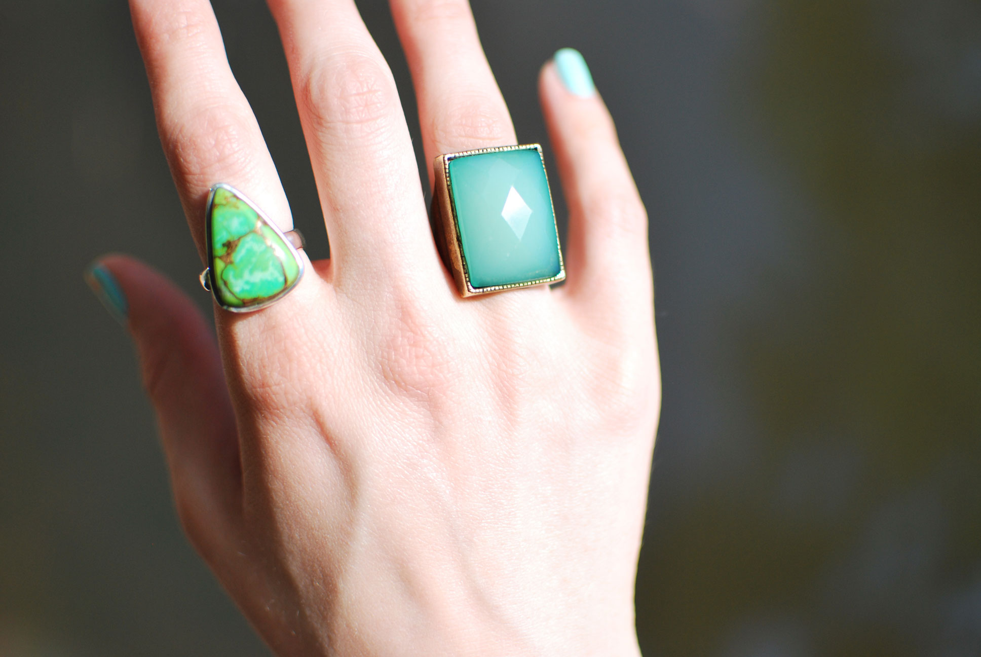 [maxi: f21 / blazer: uniqlo / necklace: h&m / shoes: bandalino / teal ring: uo / green ring: in New Hope]