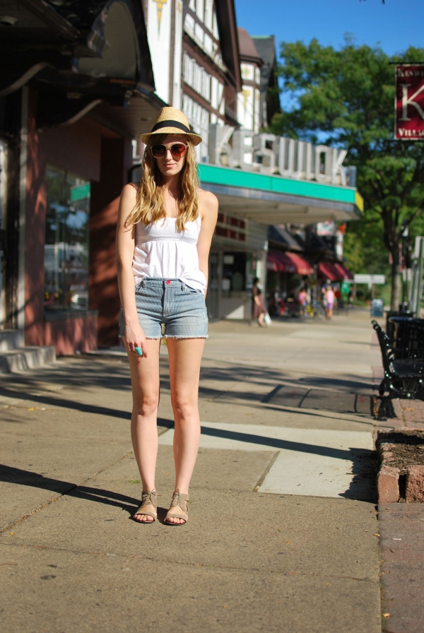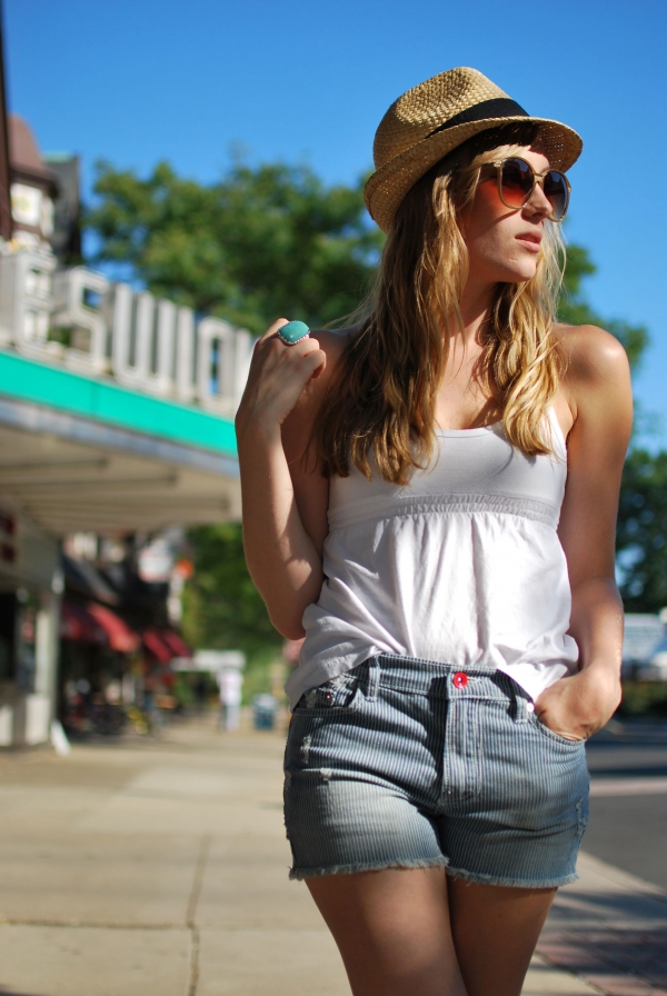 [shorts: uo / top: f21 / ring: nastygal / sunnies: f21 / hat: NY & Co / shoes: zara]