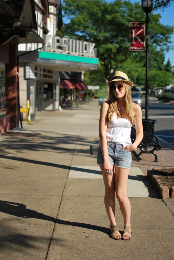 These photos are from this past weekend on an adventure to my parents house. I rarely ever wear shorts to work unless they are on the longer side so the weekend is the perfect opportunity to wear them! I got these a while back at Urban Outfitters and kind of forgot them in the bottom of my drawer. I pulled them out and sent Andrea a quick photo to show her my dresser drawer find and she said, “I love them! AND you look like a train conductor.” Um, so very true Andrea, so very true. So now, everytime I wear them I will think of a train conductor, Ringo, and Shining Time Station. Also, thank you to everyone who took the time to vote for me for the chictopia contest and who continue to vote for me for the Mad Men Contest. It gives me the warm and fuzzies and I thank you 😉