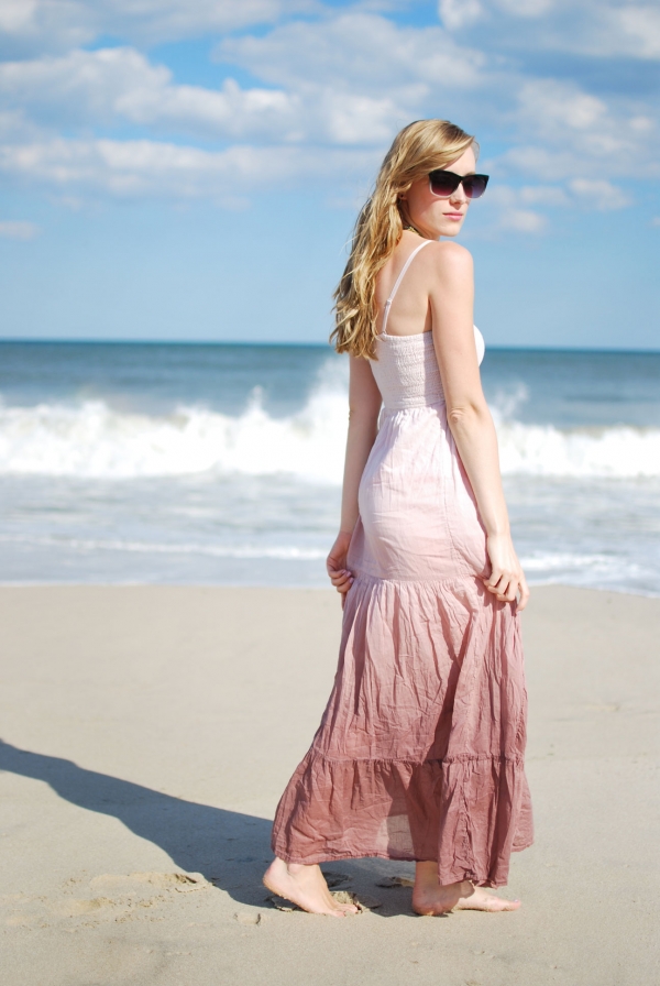 Hi friends! Sorry for the lack of posts over the labor day weekend, but a girls gotta let go and step away from the computer screen sometimes 😉 Thanks for hanging in there! This Labor Day weekend was filled with beach strolls, hanging on the patio, midday scrabble matches and of course lots of great food and wine. You know that the beach is one of my favorite places and I wanted to take a look at what the storm that came through did to the waves. Its hard to see from all the photos but the waves were ROCKINNNN. Something this summer has me crazy for maxi dresses and I actually bought this one last year at Target. The blending of the colors reminds me of how watercolors blend together. In other news, Im gearing up for NYFW (omg omg omg I am so stoked to meet and greet with all you ladies and gents!) Let the packing begin…..
