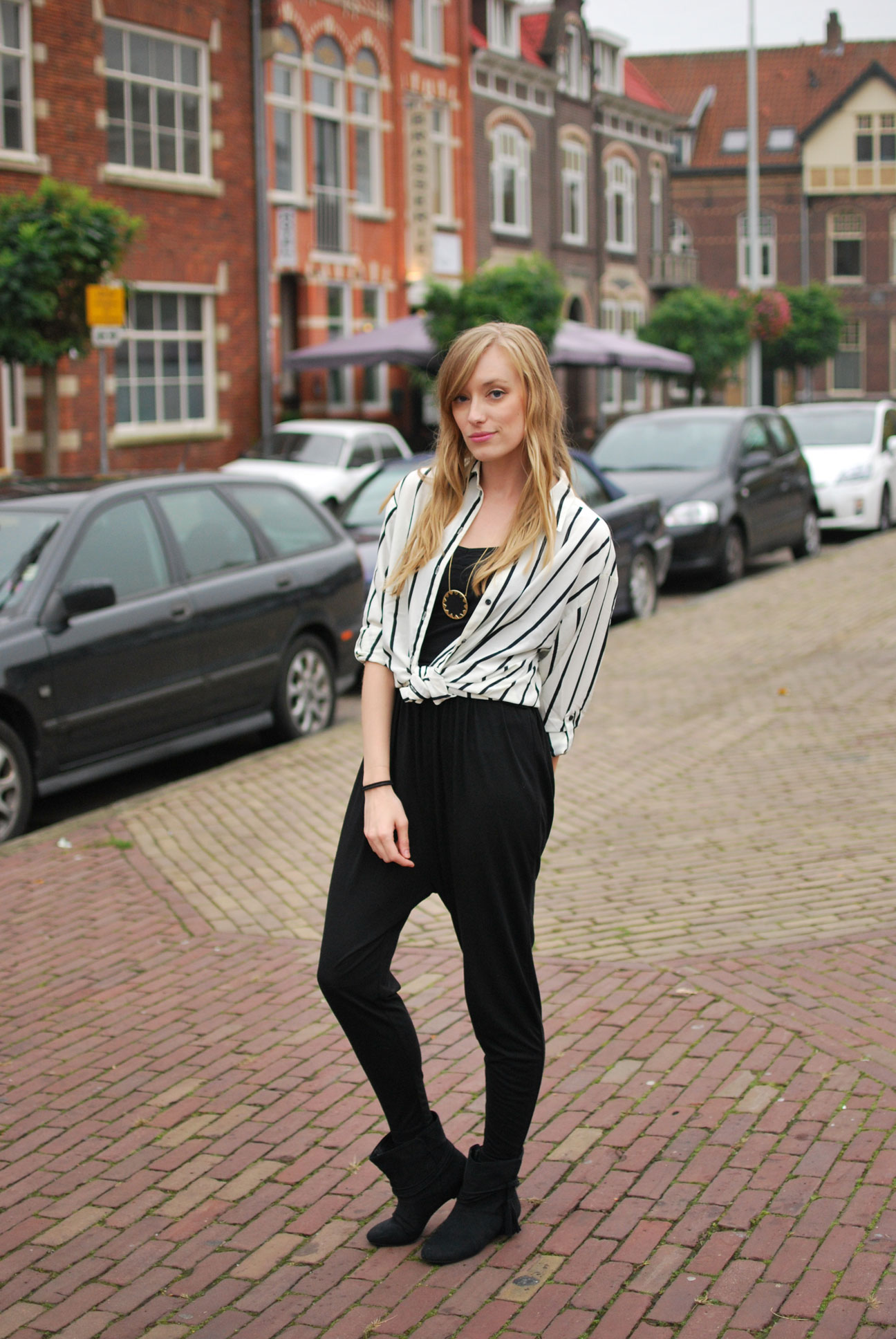 [shirt + pants: h&m / necklace: house of harlow / booties: zara]