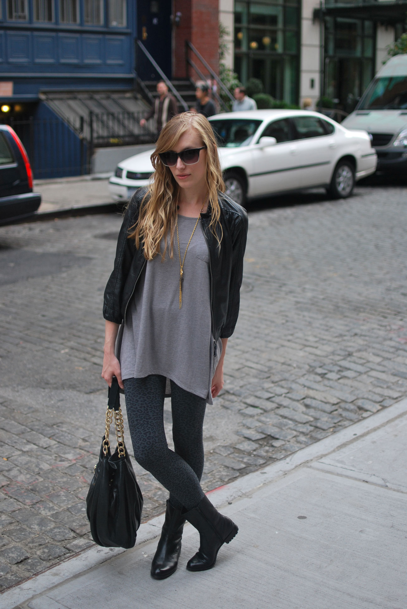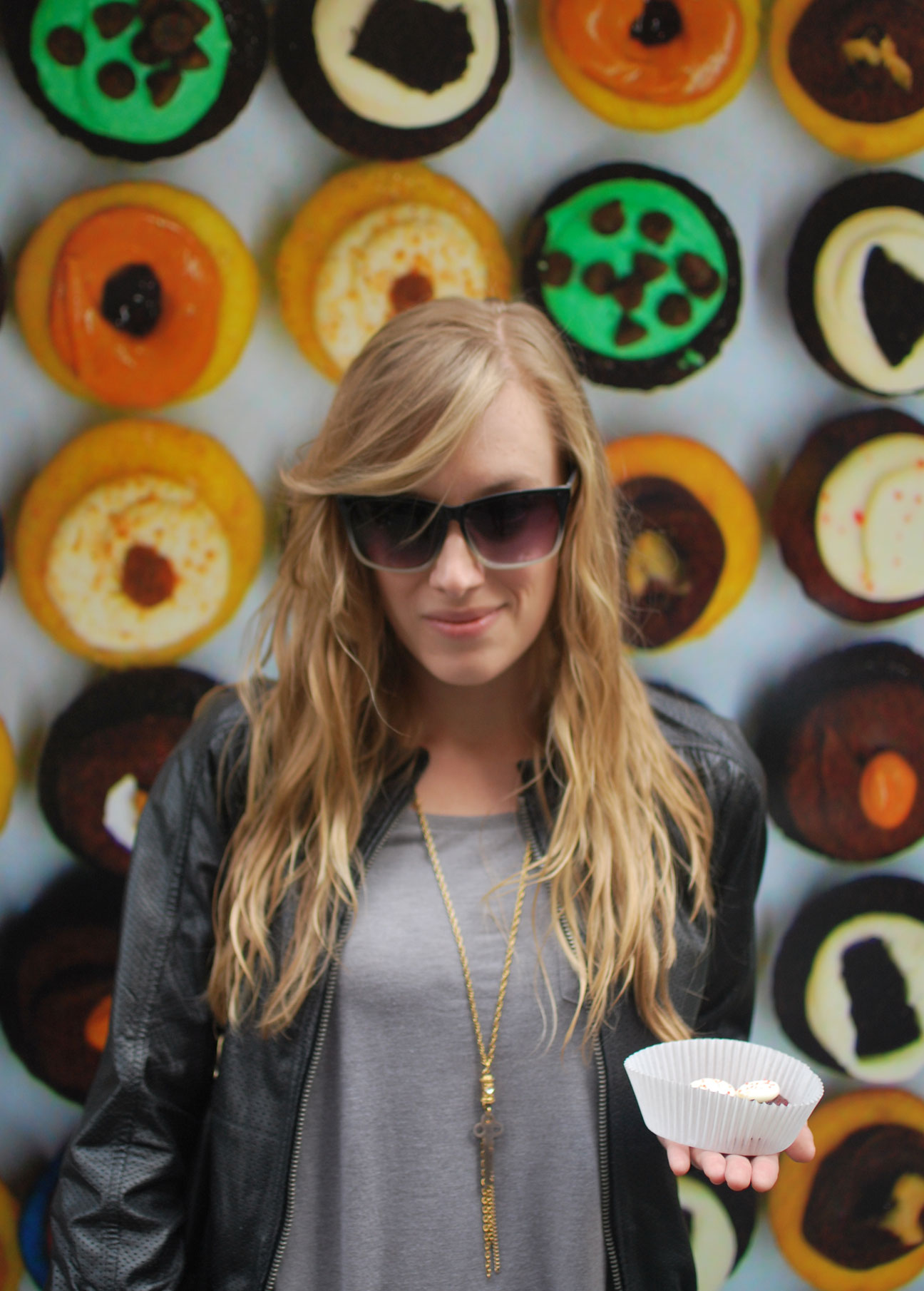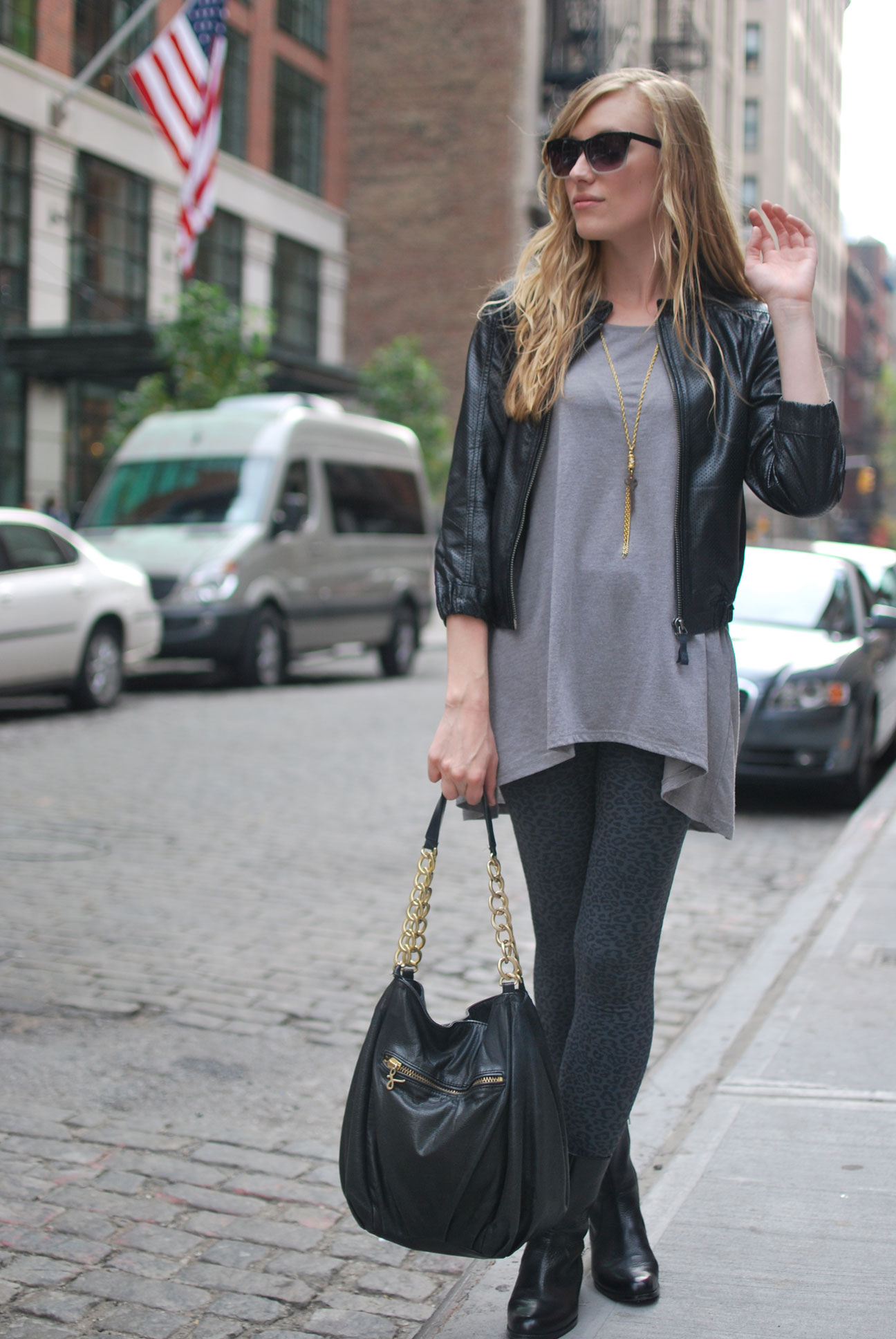 On Sunday October 24th, I turned 27!! We woke up in a little hotel in Soho and were ready to venture out for brunch. The weather was gorgeous and it was almost hot enough to not have a jacket. CRAZY for the end of October. We sat outside and drank multiple cups of coffee and soaked up the sun. I knew I wanted to hit a cupcake place that Christine had told me about called Baked By Melissa. I bought 3 little guys and gobbled them up. Happy Birthday to ME! Hahahahaha. We wandered aimless and eventually made our way over to Washington Square Park. It was the perfect end to our crazy NYC weekend. I wanted Sundays look to be casual since we would be doing alot of walking around. I love these leggings because they have the leopard print but they are still a very neutral color purple. Matches with alot! I was also excited to wear my new necklace that Merl sent to me as a birthday present! Clearly, she knows I have been into long pendants and she read my mind sending me this piece. THANK YOU MERL!! We had an amazing day but eventually, it was time to head back to Philly. Thanks NYC for the great times. Ill come back soon to play 😉