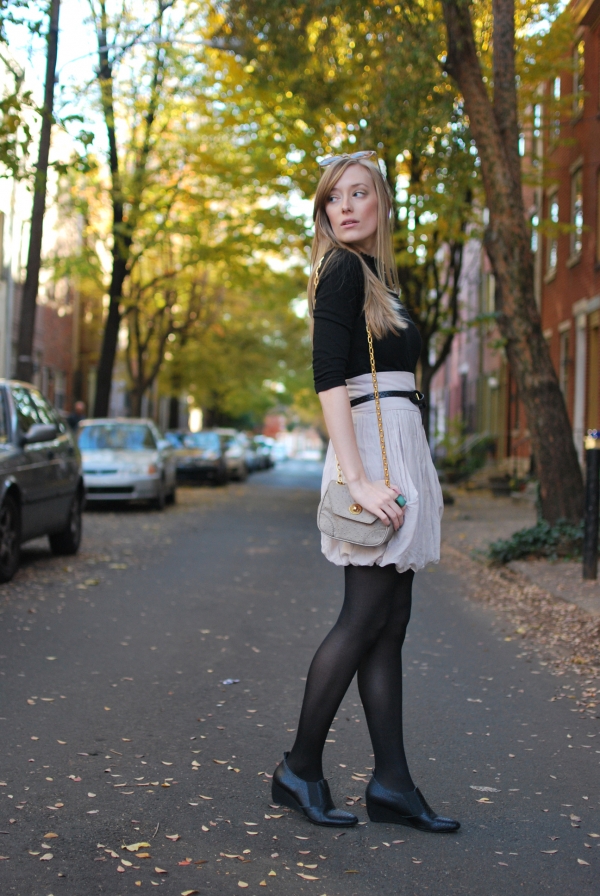 Last weekend, the weather was BEAUTIFUL and I almost could have gotten away with not wearing a jacket in the sun. The leaves are starting to fall off the trees and it was one of those picture perfect weekends in the city. Brian and I ventured down to the Italian Market for some lunch and browsing the yummy foods. There are so many quaint streets on our walk and this is one of them. For some reason I wanted to be a little dressy and wanted to wear my most favorite wedges. Fortunately for me, they match with EVERYTHING!! Best. Purchase. Ever.