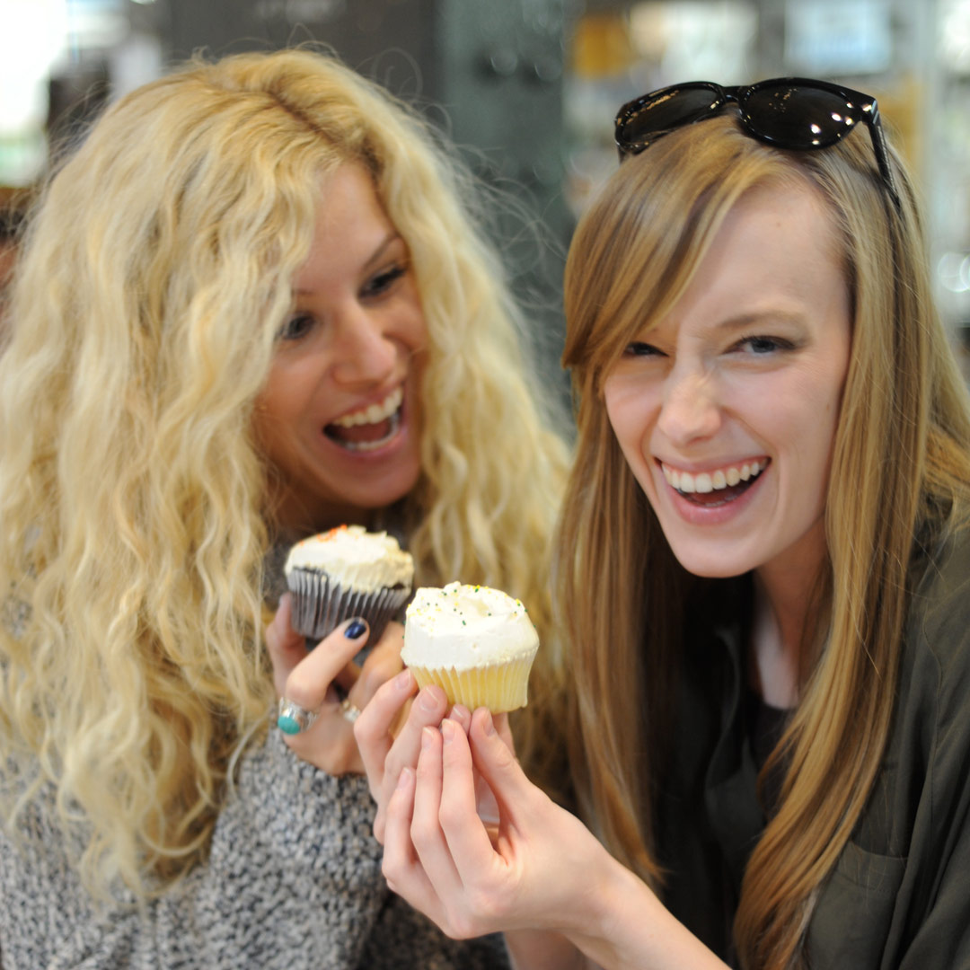 This past Friday, I topped my week off the best way possible. Friend Friday!!! My good friend Andrea knew she would be in driving distance of Philly so she came into town for the day. I met her and Brian for a late lunch at Reading Terminal Market for lunch. Andrea remembered when I took here there the last time she came to visit and wanted a cupcake from one of my favorite places, Flying Monkey. Mmm even just writing about it now make me salivate for one. We grabbed some lunch, scarfed it down and then picked out our cupcakes. I got a mint mojito and Andrea got a pumpkin flavored cuppy.
