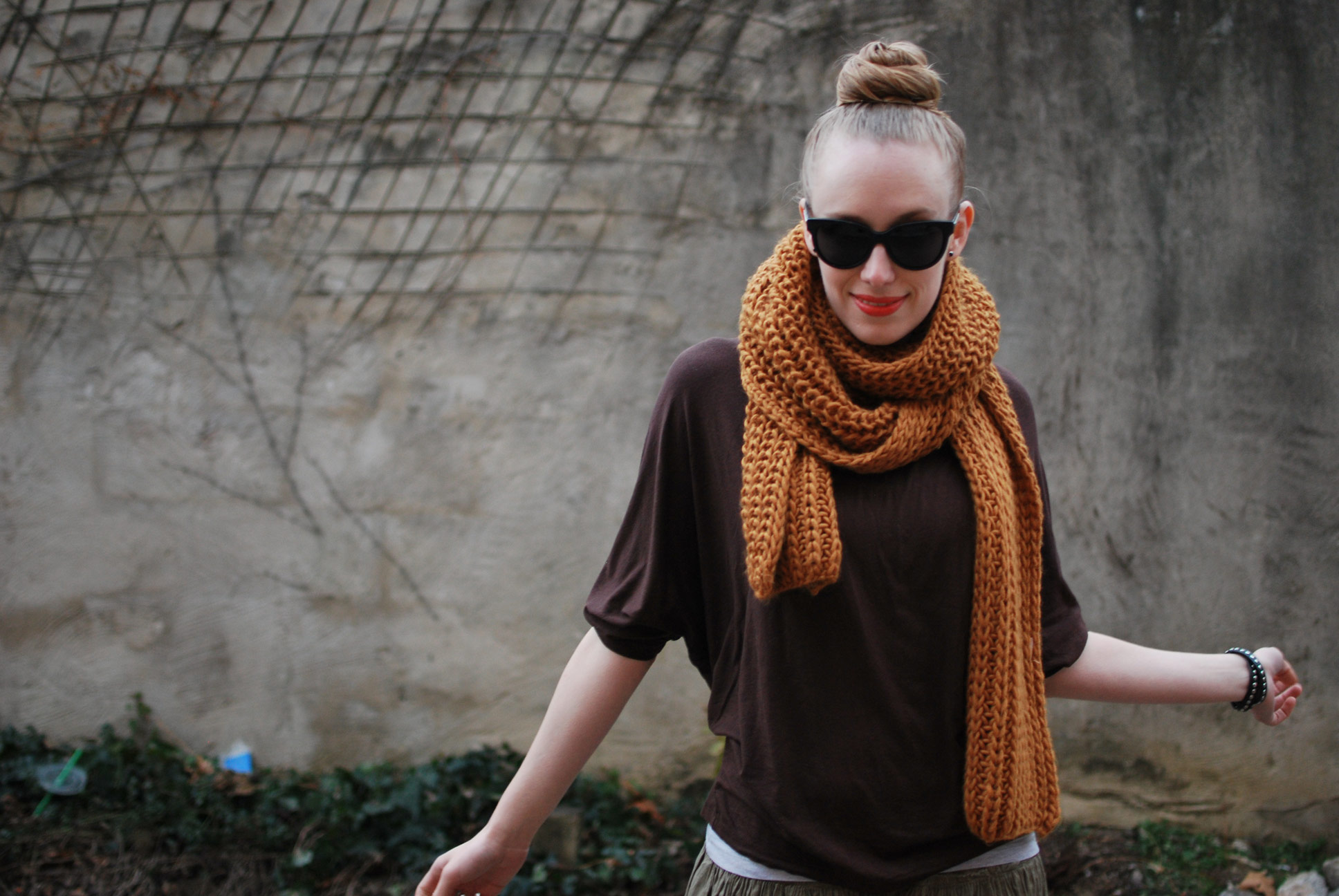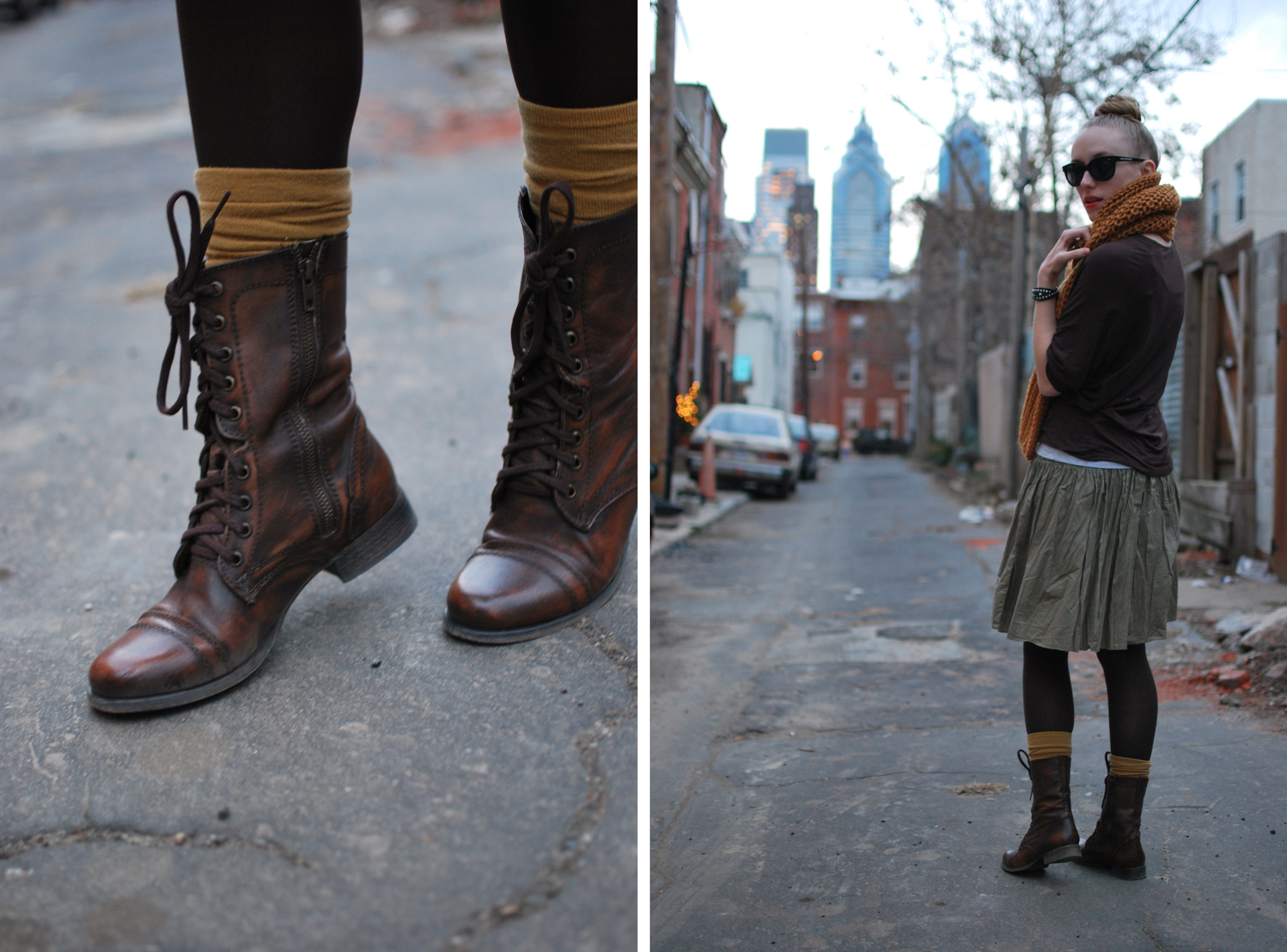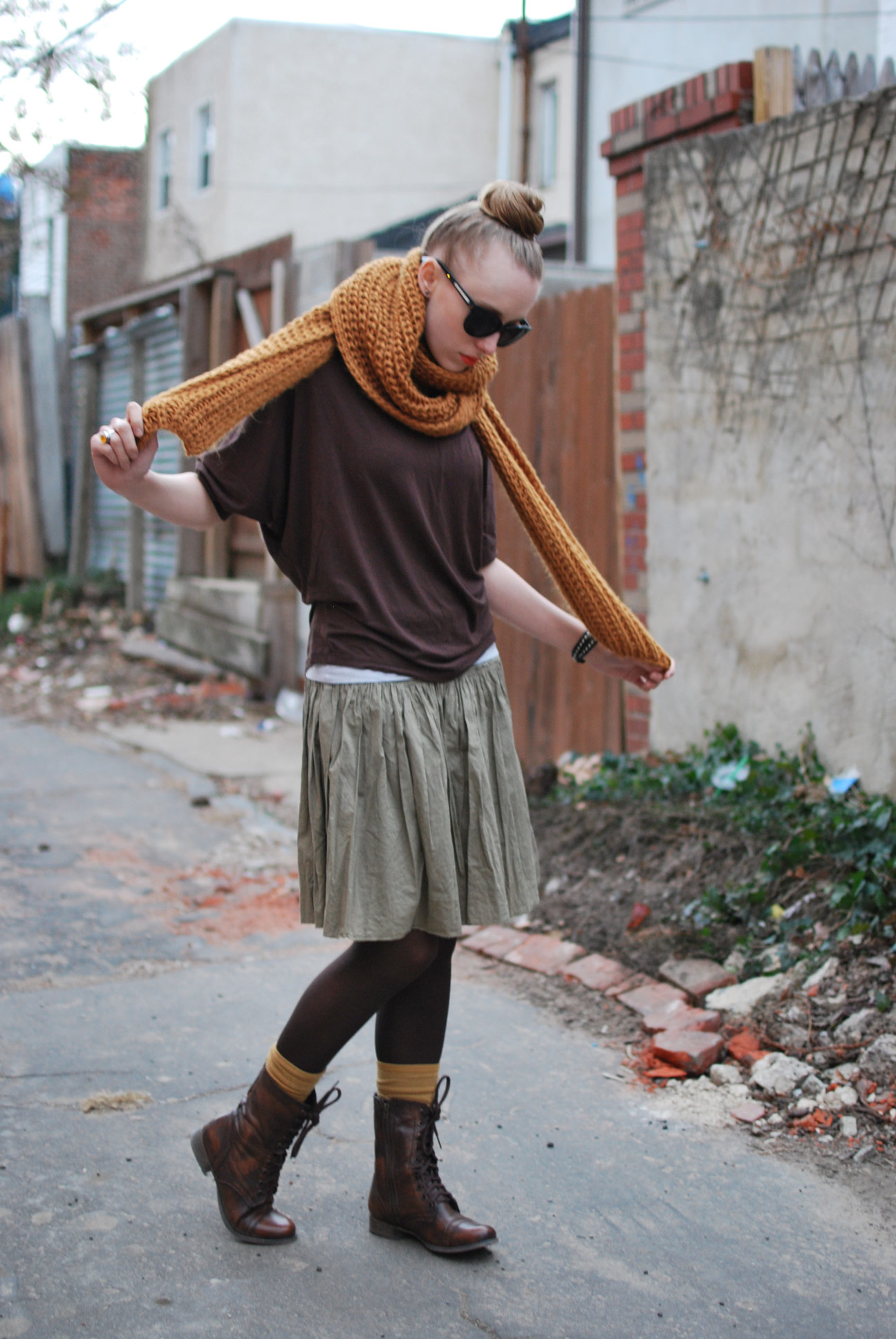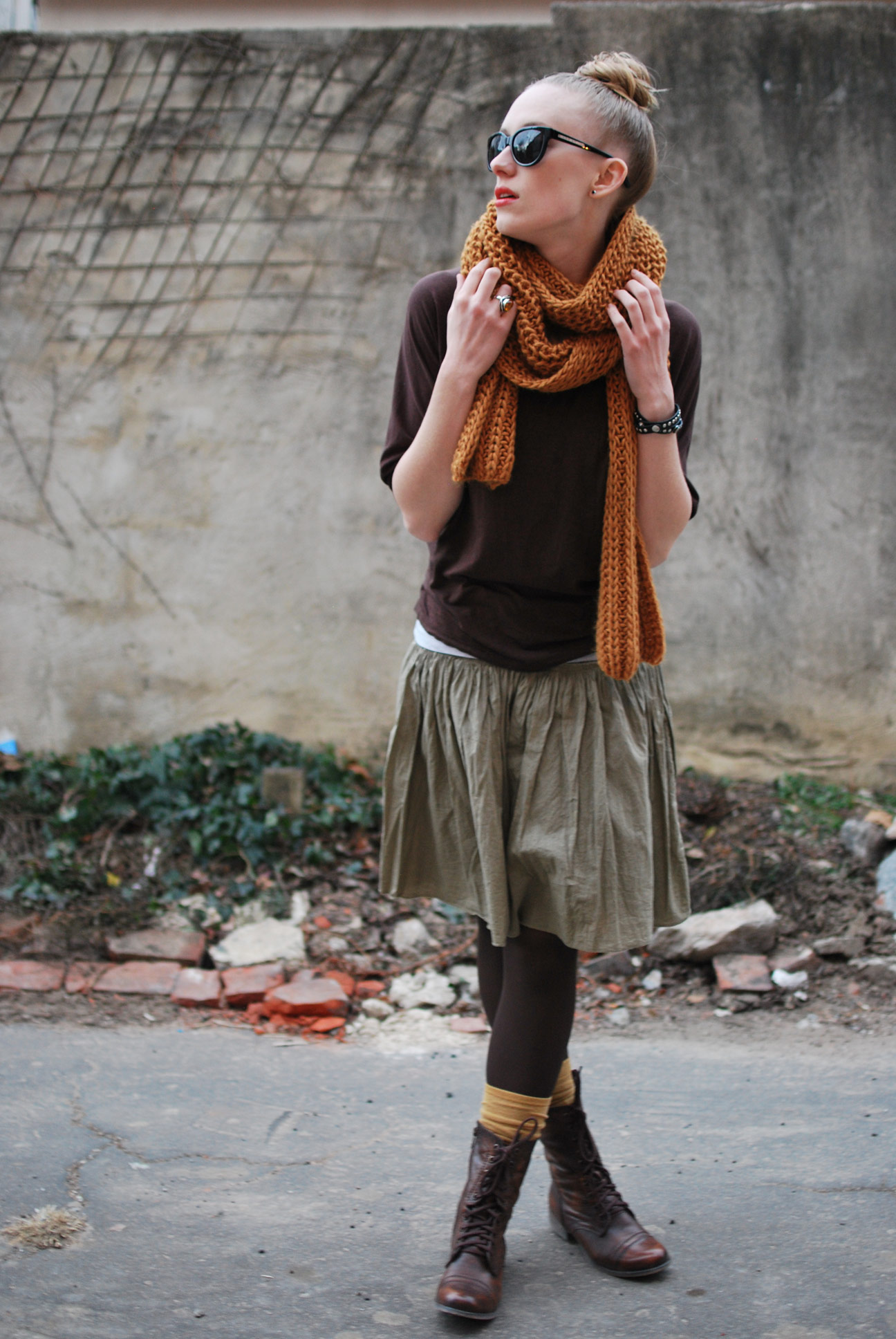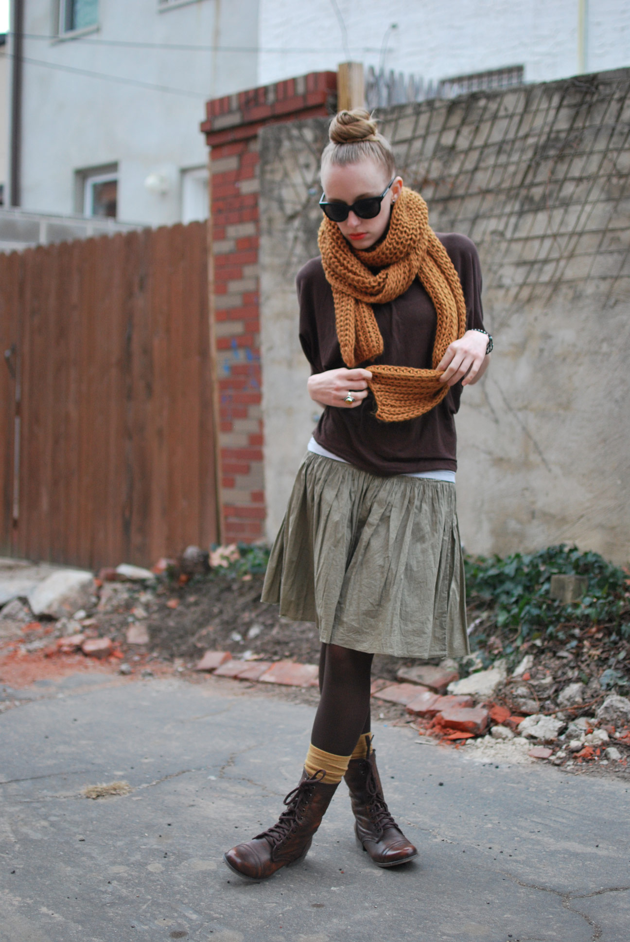 [scarf: zara / top: f21 / skirt: gap / sunnies: marc jacobs c/o shopbop / boots: steve madden]