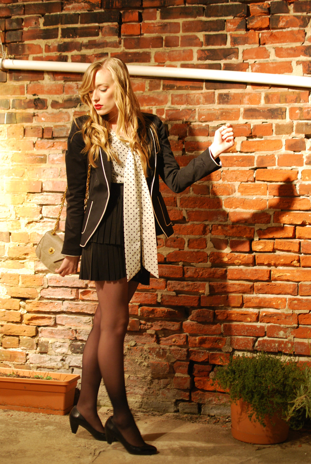 A few weeks ago, my work had our annual holiday party at the beautiful Crystal Tea Room. It’s always a glamourous affair that some people like to call our holiday “prom.” Everyone gets dolled up and enjoys cocktails, mingling and dancing. This year, I was completely unprepared. I waited till the last minute to get together my outfit but sometimes, I work best under pressure! I had Recently purchased this great pleated black skirt from Zara so that was an easy piece to start with. I didn’t want to go overly fancy but wanted something fun and still very work appropriate. I loved the idea of staying all black and white so I pulled out this polka dotted blouse also. This wasn’t complete to me though. I sat in front of my closet trying to figure out how I could spice up this simple skirt and blouse when all of a sudden I realized I had totally forgotten this blazer I bought on sale a while back. I knew it would be just the classic final touch. And I wouldn’t be cold at the party! Double whammy. So my holiday look was born. It’s funny how you can always push the things you have when your forced to make it happen! Have you been in this situation before? No time to shop and needed to put something together fast?