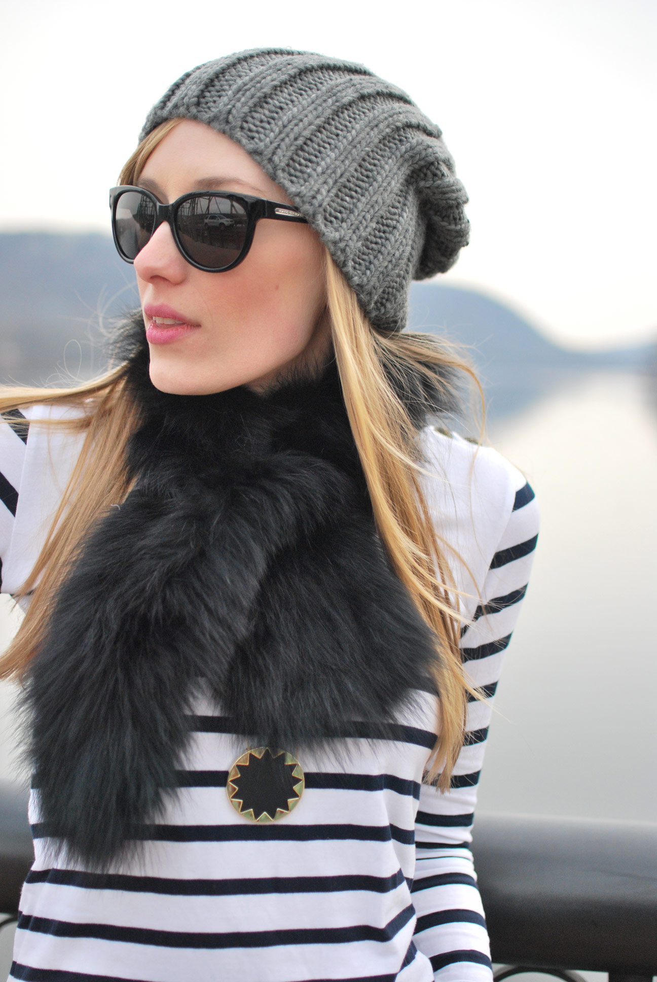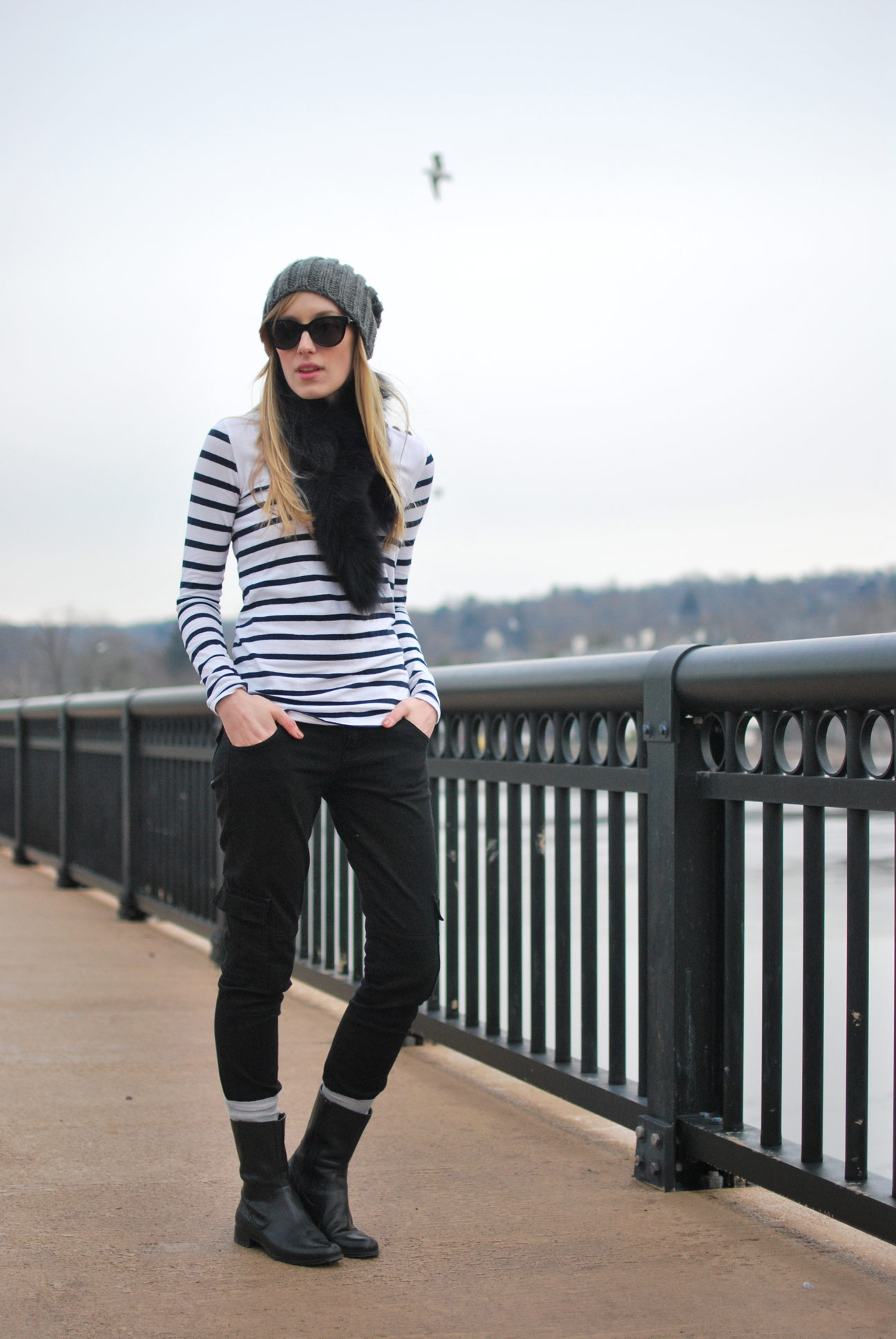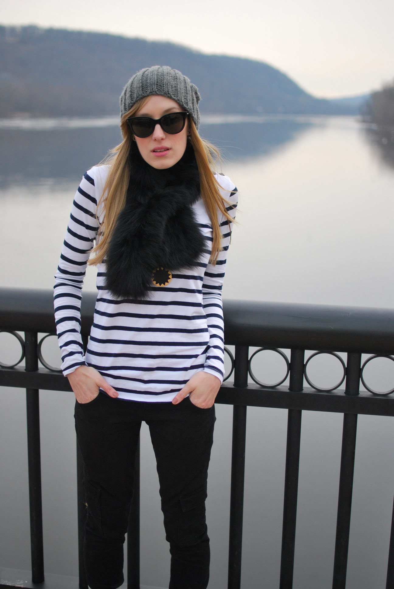 There is nothing better than little weekend trips to get out of the city and out for some fresh air. I headed to New Hope with Brian and my parents to our favorite French bakery for breakfast and a stroll. It was so so cold this day!! So I was bundled up in my big puffy coat and warm gloves. Everyone always looks at me like I’m nuts when I shed my jacket for blog photos but lets be serious, you can’t see the outfit under a heavy coat! (I know you appreciate this 😉 ) I will never turn down anything with stripes. So when modcloth sent me this top, I knew it would instantly become a go to for me.