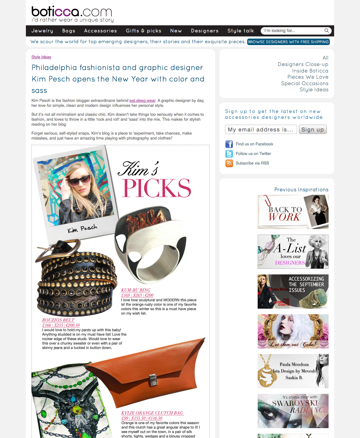 I was so thrilled when Boticca contacted me and asked if I would check out their pieces and make some picks of what I lusted after. They are a pretty sweet UK company that sell products by a handful of different designers from all over the world. Click here or on the image below to check out my picks! xo, Kim