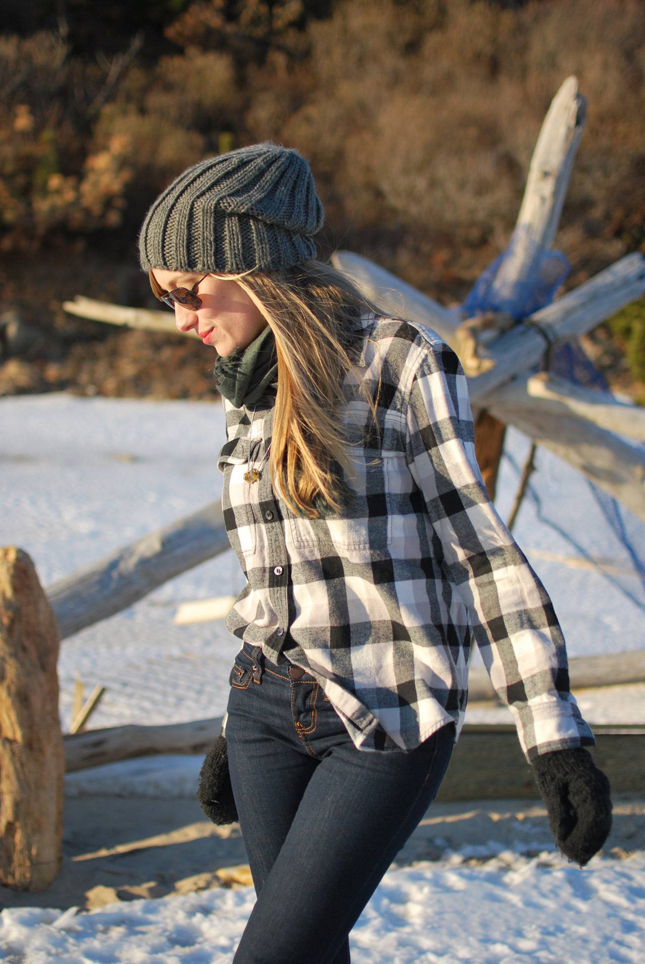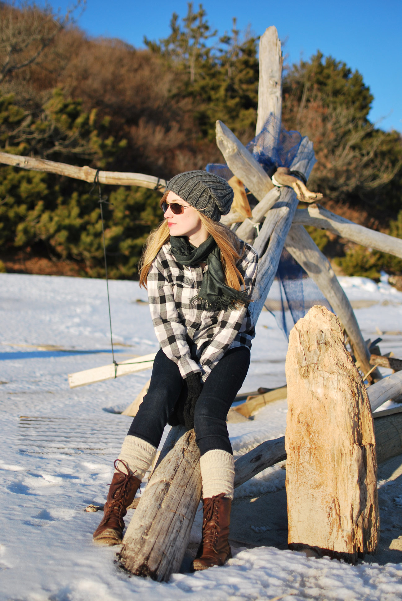 So! I am back with more photos from my weekend at the beach. This day, we spent most of the day outdoors. Morgan took us to many of her favorite places and it really gives me a good feel for how she grew up, and why we share so many similarities and get along so well. As much as I am a city girl, I love being outside and surrounded by the sounds, smells, and sights of nature. Even though I didn’t grow up living near the ocean, I have always somehow felt very connected to it. A walk on the sand is all it takes to come to complete relaxation for me. Ok! Enough blabbering on about how much I love this place. On to the outfit! The cold only got more so as we stayed that weekend. So I was looking for sheer warmth and something walkable for during the day. Morgan let me borrow her super soft flannel and I had bought these tall socks from American Apparel that were thick and kept my feet warm (for a little whiles anyway). I HAD to wear a hat or my ears would have probably fallen off my face. When I put it on, Brian said to me, “You look like a homeless person in that hat.” HAHAHA. Look how much I followed his advice. I wore it anyways. So now I will think of that every time I wear it and smile. Scroll down for a TON of outfit pics and extra goodies from our adventure day. Enjoy!