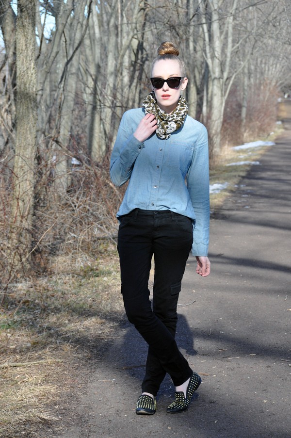 And we have made it through another week! Congrats. You now get a cupcake. I would love to share one with you, but that might be hard for me. HAHAHA. Anyways, its casual Friday for me and I have to thank my mom for snapping these photos for me over the weekend! This has been one of my uniforms of the past few weeks when I wanted to run out of the house but still look presentable, on went this button down. Totally simple look that I just LOVE. It was fun to add the little bit of print and the funky flats to add a little bit of me to it. Nobody said being casual or comfortable meant you couldn’t do it with style 😉 What are your go to pieces for your laid back days?