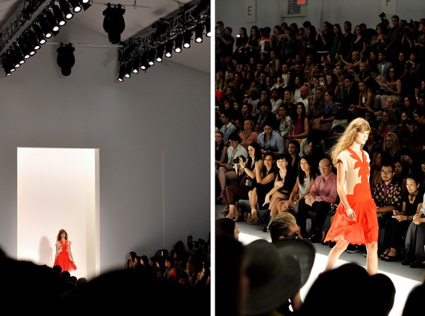 Scalloped hems and girlie details were walking down the runway at the Jill Stuart show. The sherbet colors were right up my alley and I loved the playful graphic details. Love the graphic patterned blazer in the second photo. Such a statement piece!