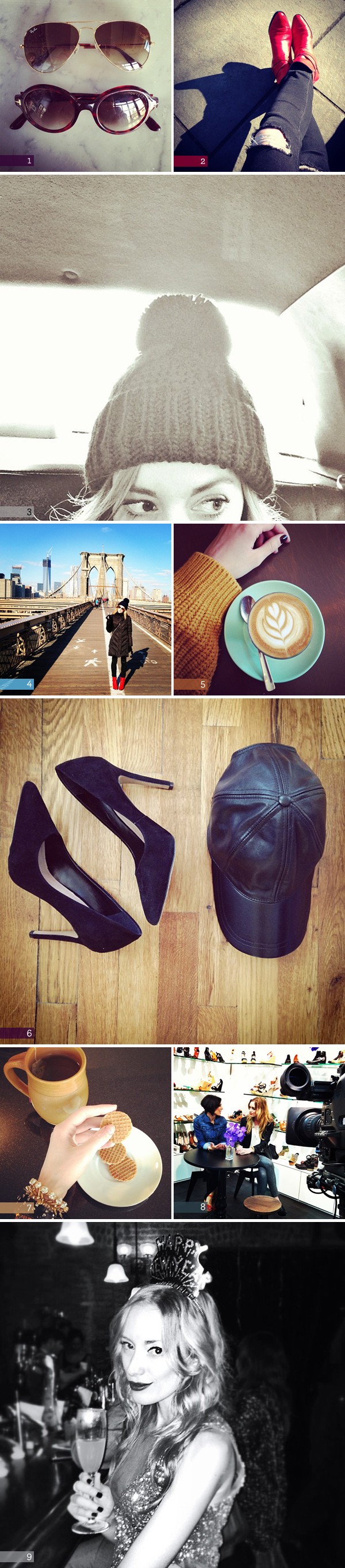 4. walking the brooklyn bridge / 5. cortado at deluxe / 6. vince camuto heels + asos leather cap /