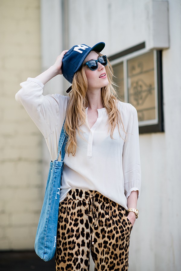 [hat: j.crew / top: otte / pants: zara / bag: guess / shoes: aldo / shades: c/o TOMS]