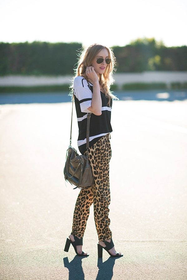 It’s always trouble coming off a long weekend. Can we get just one more day of vacay please?? Back to reality I guess… back to the grind! This look is one of my favorites. It’s definitely a girl favorite and “man repeller” as I asked my boyfriend what he thought and he said, “So those are your around the house clothes?” Oh silly boys. You know us ladies love a good pattern play and silk slouchy pant. I kept it super simple with a pair of funky black sandals and neutral bag. It was perfect for a day of lunching + meetings. Happy Monday everyone.