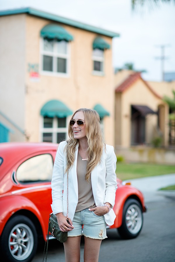 [blazer: rag & bone / shorts: james jeans / top: bailey44 / shoes: schutz / bag: rebecca minkoff