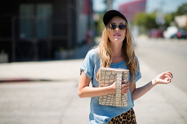 Today I am time traveling to before NYFW to this look which I wore in LA a few weeks ago. I am finally getting around to share it with you! (I know, I am behind) What I love about it? It’s all about the easy pieces. Give a girl some silk pants and she will wear them for days, at least I will. It’s a fun print to mix with other textures and I loved pairing it with this croco clutch and threw on a leather baseball cap to keep my look super relaxed. On another note, one more full day of NYFW madness for me before I fly home. Stay tuned on instagram for all those little photo + video moments here. Thanks to everyone who has been following along 😉 It’s been an amazing week.