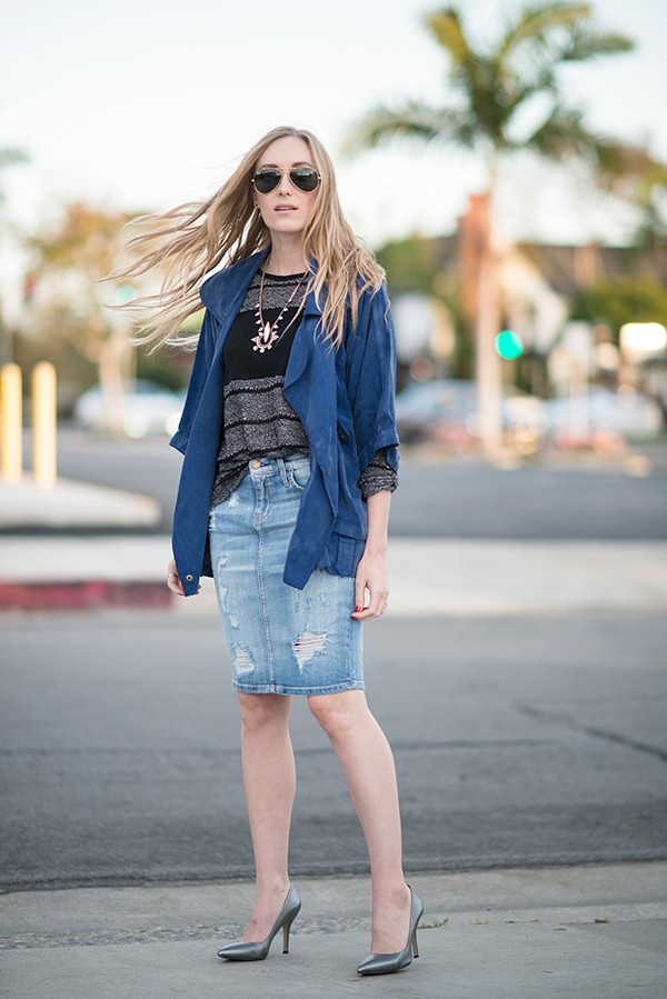 Love this denim twist on a pencil skirt. Such a fun texture with the distressed details. A new closet favorite right now.