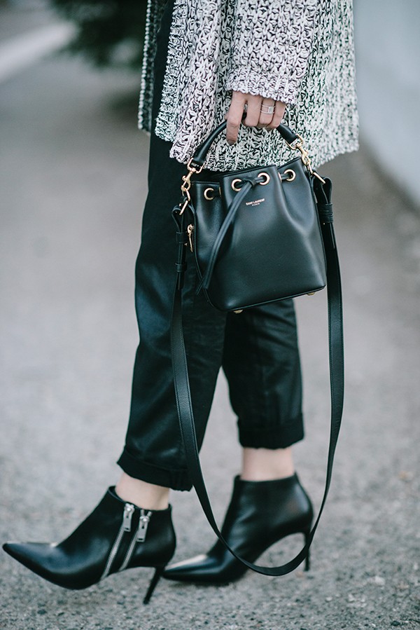 I can never say no to a stripe shirt. Always a classic. I matched this one up with a textured knit and slouchy trouser. Also finally taking my little bucket bag for a spin. Hello little bag baby 🙂 Hope everyone is having a great week.