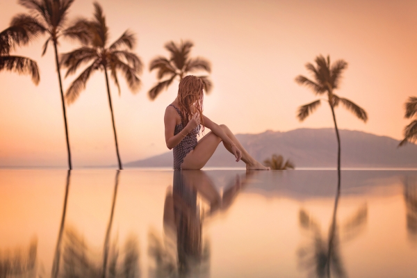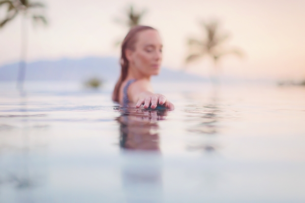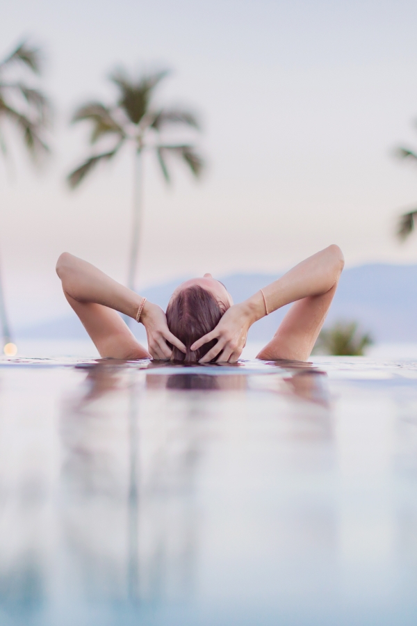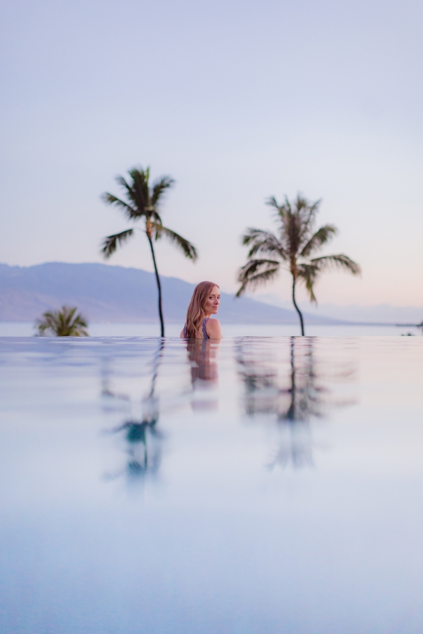 Our dear friends and photographers Love and Water who have shot us married, pregnant, and as a family wanted to do a little creative shoot before we headed home. We slipped into the pool at sunrise while they were setting up for the day. Since I often put myself last since I always 100% put Otis first, it was such a special morning jumping into that warm untouched water and watching the sun rise over the island. The peace and quiet and being up before the rest of the world… such bliss. One of my favorite things on Maui is watching the sun rise and set. The colors and the ocean breeze are one of the most magical things I have experienced. I know I sound like a total cheese ball but there is something I can’t put my finger on that just makes Maui such a real life gem.