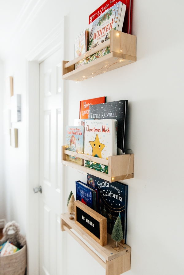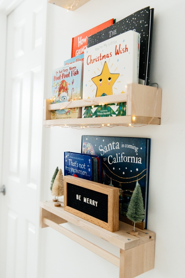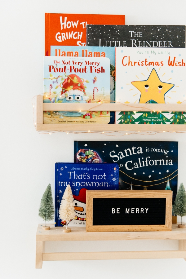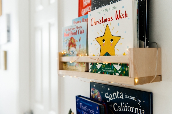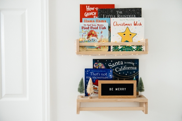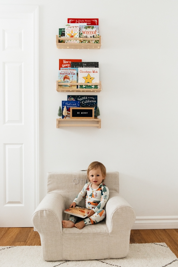 Last week I took a trip with Otis to Barnes & Noble to stock up on some Christmas and holiday books. We only had a few from last year so I thought it would be a fun adventure to head to the store instead of pick out a bunch online. It’s been months since I have been to the book store and there is just something special about holding them in your hand, flipping through the pages and falling in love with them one by one. I brought Otis in the stroller so I could initially make my edit without chasing him through the store. HA! We went on a Monday morning right when the store opened so it was quiet, peaceful, and empty. Eventually I let Otis loose and he proceeded in pulling every book in his path off the book shelf and I chased him, putting every book back. What can I say, the kid loves books. I ordered these twinkly lights to turn on when we read our books at night and grabbed these little trees at the dollar section at Target. The simplest decor can really change the vibe of a room and this little twinkly of holidays has me feeling so excited for Christmas. Going to the bookstore before the holiday season is going to be added to our holiday bucket list for years to come. Whether you head to the book store, or the library, make sure to take a trip with your kids. Such a sweet memory to share together.
