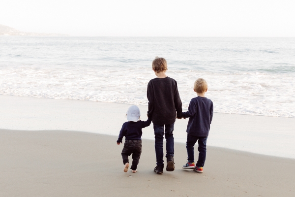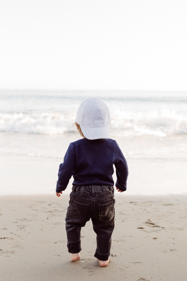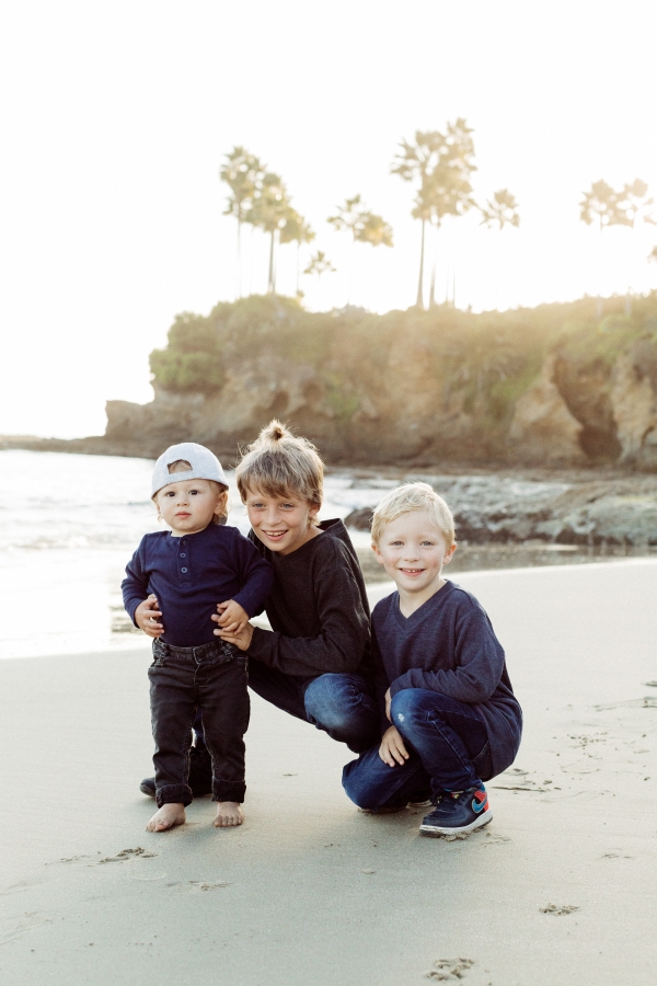 I talked about this in my post sharing tips and tricks for Pumpkin patch photos. It’s great for the colors to seamless blend together when it comes to your outfits in family photos. It’s also nice when things match but aren’t too perfect. I decided to go with a blue and neutral palette since it would blend really well with the Ocean and sky. What is also nice is that I knew all the boy would have blue or gray jeans in their closets all ready so it would be very easy to match those colors to the pants they already had. I sent Blake to Old Navy to find all 3 of the cousins tops that would blend together. The last thing you want is everyone wearing neutrals and one person showing up in a bright red sweater. Not the cutest to have 1 person really sticking out color wise. Trust me, blend those colors baby and keep it simple by picking one main color and balancing it with other neutrals.