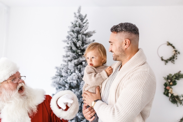 These photos of Otis and Santa just warm my heart. I have looked forward to the holidays so much this year because Otis such a little person now really interacting with the whole world around him. There is nothing like watching him discovering new experiences and creating memories with him no matter how small, they are all so magical to experience with him. After our first trip to see Santa with Laurel when Otis was tiny, we signed up again to have an intimate date with Santa! Otis is SO fascinated with his Santa book at home that I was so excited to see his reaction to him in person. We went to South Coast Plaza for our first Santa experience here and it was your classic crying Santa meet and greet. He was NOT into sitting on Santa’s lap and honestly, I can’t blame him. Stranger danger alert. But since Laurel, of Poppy Lea Photography creates a super intimate space and experience with Santa, I was excited to see how Santa round 2 went.