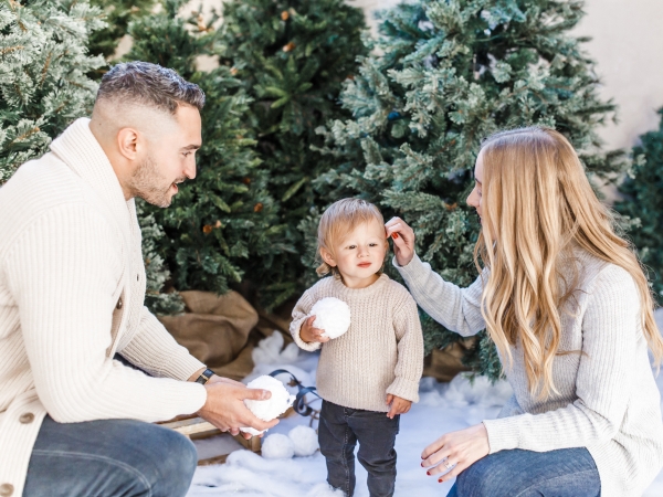 What I loved about our day was we got there super early so Otis could play a little and warm him up to the space before hopping right into meeting Santa. Basically he spent the whole time playing with these toys and he was feeling right at home. When we walked in, Santa tried to get Otis’ attention with a candy cane and he legit made the funniest snarl face I have ever seen. Sorry Santa. Screw you and your candy cane too!! That is what I envision him saying in his head. HA! Of course he cried when we put him in Santa lap but once we hold him he is totally fine. We took a few photos in the fake snow and he loved the little snowballs. When we went back in to say goodbye to Santa, Blake and I were giving Santa highfives and Otis was interested. He ended up holding Santas hand and giving him multiple high fives. OH MY GOODNESS MY HEART CAN’T HANDLE IT!!!!!!!!!!! I feel so lucky to be able to experience these things with him. So lucky.