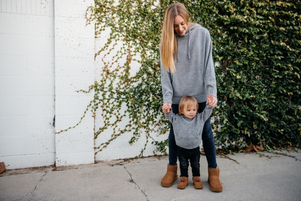 Mother + Son Jenni Kayne hoodies: Ok FINALLY a super cute matching sweater. These cashmere sweaters are super soft and cozy and we have been wearing them on repeat.