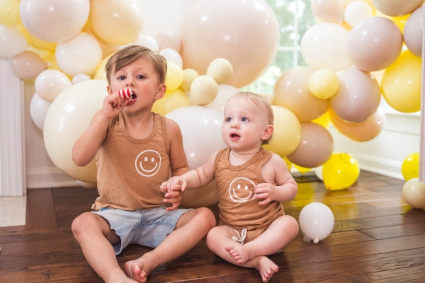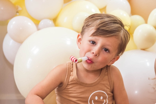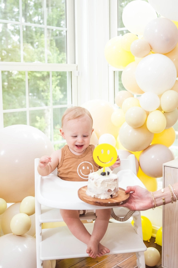 Since we always call Duke “Mr. Smiles” I knew the theme for his birthday party instantly: Smiley Face Theme. Sweet just like him! Smiley face accessories are pretty easy to come by so I knew it would be a breeze to get everything together for it. You know how much we love a balloon arch in this house and Blake is basically an expert at balloon arches now. I think he might actually enjoy it dare I say!!