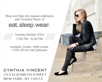 Hey New Yorkers! I am hosting a fun event at the Cynthia Vincent Store in Soho next Tuesday October 23rd from 7:30 PM-9:30 PM. Get your shop on, have some treats and enjoy 15% off the Fall Collection. Looking forward to seeing you there!…