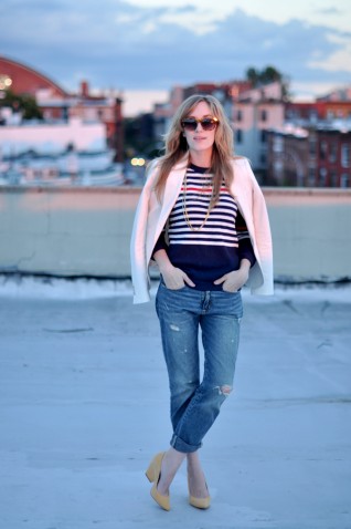 [sweater: borrowed from Quiksilver / blazer: zara / jeans: denim & supply / shoes: c/o pLv / necklace: c/o sorrelli / shades: anthropologie] Let’s take a little quick break from NYFW to bring you a fun project with Quiksilver….