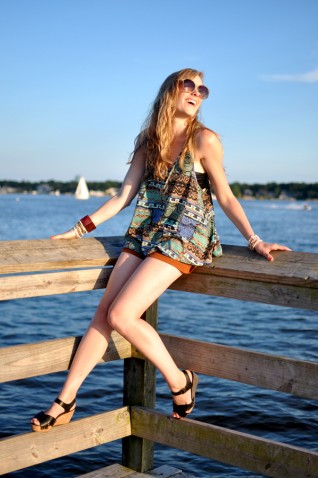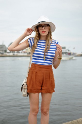 [top + shoes: zara / hat: target (similar style here)/ shorts: urban outfitters / bag + watch: c/o coach / chain bracelet: c/o jupe boutique / necklace: c/o need supply / glasses: c/o warby parker] Beach times are always happy times…